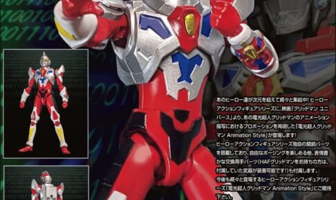 円谷プロとTRIGGERが贈る映画『グリッドマン ユニバース』より、電光超人グリッドマンのアニメ描写におけるプロポーションを再現した可動フィギュア「電光超人グリッドマン Animation Style」が、2024年6月にEVOLUTION TOYのヒーローアクションフィギュア(HAF)シリーズより発売される。