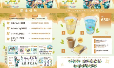 尼子騒兵衛先生原作のアニメ「忍たま乱太郎」× アニメイトカフェ出張版が、長野・福岡・埼玉・大阪にて2023年2月4日より順次開催される。「忍たま乱太郎 × アニメイトカフェ」の出張版コラボでは、”ピクニック”をテーマとした描き下ろしイラストのグッズが販売される他、コラボドリンクと描き下ろしノベルティが登場!