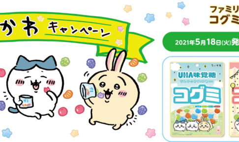 イラストレーター「ナガノ」さんが描くTwitterやSNSで大人気のキャラクター「ちいかわ (なんか小さくてかわいいやつ)」× UHA味覚糖の人気商品「コグミ」による「ちいかわコグミ」が2021年5月18日よりファミマ限定で新発売!ちいかわ・ハチワレ・うさぎ達が描かれたオリジナルパッケージでラインナップ!