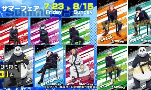 芥見下々先生による人気漫画を原作としたTVアニメ「呪術廻戦」(じゅじゅつかいせん)の描き下ろしイラストを使用した特典が貰える「呪術廻戦 サマーフェア」が、2021年7月23日〜8月15日まで実施!描き下ろしイラストには、虎杖悠仁・伏黒恵・釘崎野薔薇・禪院真希・狗巻棘・パンダ・五条悟・両面宿儺がラインナップ!