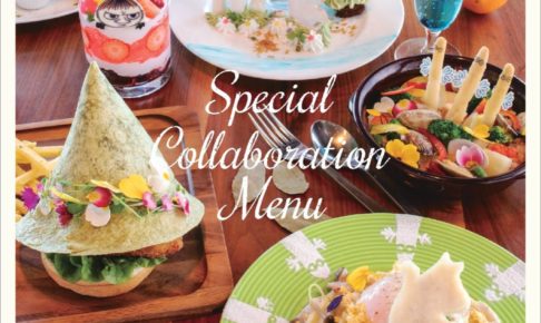 森アーツセンターギャラリーにて大好評開催中の「ムーミン展」× Cafe THE SUN(森タワー52階 ムーミン展と同フロア)のカフェにて2019年6月16日までムーミンコラボメニュー登場!スナフキンの帽子をモチーフにしたハンバーガーや、ムーミンとニョロニョロのデザートなどムーミンの限定メニューお見逃しなく!