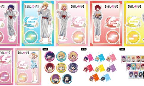 「赤坂アカ / 横槍メンゴ」先生らによる人気漫画を原作としたアニメ「【推しの子】」より、描き下ろしイラスト“お風呂 Ver.”を使用したグッズが、2023年12月に発売される。グッズは極楽湯コラボで先行販売されたもので、お風呂上がり浴衣姿のアイたちが描かれた「アクリルスタンド」「ミニキャラ缶バッジ」などが登場!