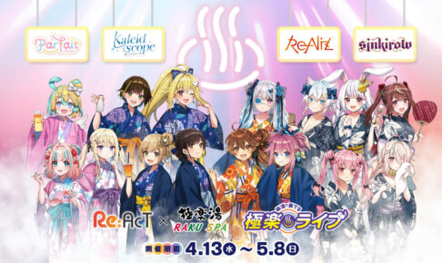株式会社mikaiが運営するバーチャルYouTuber事務所「Re:AcT (リアクト)」× 極楽湯・RAKU SUPAにて、2022年4月13日〜5月8日までの期間限定で「Re:AcT」コラボ開催!アーティストたちをイメージしたコラボメニューやコラボ風呂、描き下ろしイラストを使用したオリジナルグッズが登場!
