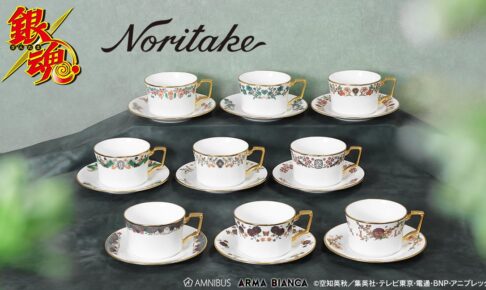 空知英秋先生による“SF人情なんちゃって時代劇コメディー”漫画を原作とするアニメ「銀魂」× 日本の高級陶磁器メーカー「ノリタケ」が贈るコラボ「カップ&ソーサー」が、2025年8月に発売される。坂田銀時らのキャラモチーフが、水彩タッチの桜とともに白磁に映える全8種が展開され、価格は各18,700円(税込)。