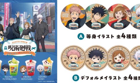 アニメ「呪術廻戦」の描き下ろしイラストで全国を廻るポップアップイベント『呪術廻戦 全国を廻れ! じゅじゅつ旅』より、2024年3月15日〜4月7日まで開催される東京「原宿アルタ前」にて、特典付きのコラボドリンクがキッチンカーで発売。虎杖悠仁・伏黒恵・釘崎野薔薇・五条悟ら4名をイメージしたコラボドリンクが登場!