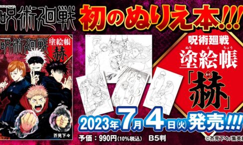 週刊少年ジャンプにて連載中「芥見下々」先生による大人気漫画「呪術廻戦」の原作イラストを使用した塗り絵帳「呪術廻戦 塗絵帳『赫』」が、2023年7月4日より発売される。芥見下々先生の「呪術廻戦」原作イラストを用いた塗絵を36点収録! 大人も子どもも楽しめる“塗りごたえのある”一冊に!