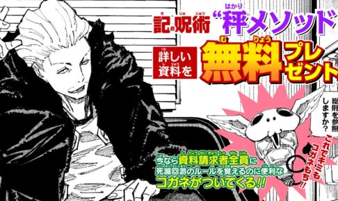 週刊少年ジャンプにて連載中、芥見下々先生による人気漫画「呪術廻戦」より、これまでの記憶術を超える『記お呪術』が登場、その名も“秤メソッド”!呪術高専の風雲児である「秤金次」先生が提唱する今最もホットな記憶術、テスト0点から奇跡の高校合格を果たした「虎杖悠仁」さんの体験談を交えた特設サイトも公開!