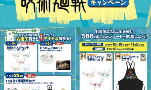芥見下々先生による人気漫画を原作としたTVアニメ「呪術廻戦」(じゅじゅつかいせん) × ファミリーマート全国にて、対象商品を買ってアプリまたはレシートで応募すると、オリジナルコラボデザインを使った限定グッズが抽選で当たるプレゼントキャンペーンを2021年10月19日より開催!