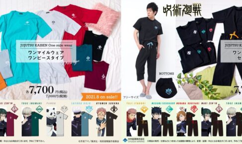 芥見下々先生による人気漫画を原作としたTVアニメ「呪術廻戦」に登場する虎杖悠仁・伏黒恵・釘崎野薔薇・五条悟・禪院真希・狗巻棘・パンダ・両面宿儺ら8人のキャラクターカラーをイメージした着心地の良さにこだわった「ワンマルイウェア (ワンピース / セットアップ) 全8種」が、中外鉱業より2021年8月発売!