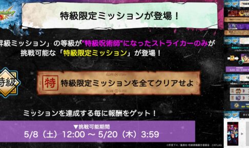 芥見下々先生による人気漫画を原作としたTVアニメ「呪術廻戦」× モンスターストライク(モンスト)による大好評開催中のコラボに2021年5月8日より追加イベントが登場!ミッションをクリアすることで得られる「特級呪術師」の称号や特級呪術師のみが挑戦可能なミッションが登場しクリアすると入手できる「呪術の書」も!