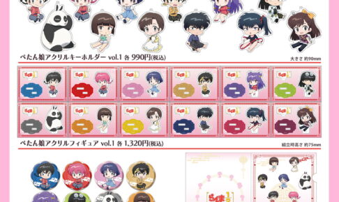 高橋留美子先生による人気漫画を原作とし、第2期の制作が決定したTVアニメ「らんま1/2」から、描きおこしデフォルメイラスト「ぺたん娘」グッズが2025年2月に発売される。乱馬 & らんま・あかね・良牙・シャンプー・ムース・玄馬 (パンダ)・なびき達を描いた「アクリルキーホルダー」や「アクリルフィギュア」が登場!