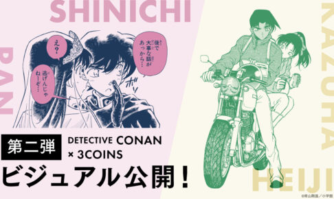 週刊少年サンデー(小学館)にて連載中「青山剛昌」先生による大人気漫画「名探偵コナン」× 全国の3COINS (スリーコインズ) にて、2024年夏より展開される30周年記念コラボの第2弾情報が解禁! 原作コミックスの中から厳選された「新一 & 蘭」と「平次 & 和葉」の名シーンをポップにデザイン!