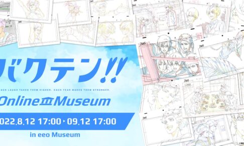 宮城県岩沼市を舞台として高校生男子新体操部の青春を描くオリジナルTVアニメの劇場版「映画 バクテン!!」の公開を記念し、eeo Museumにて2022年9月12日までオンライン原画展が開催される。「映画 バクテン!!」展では、アニメ制作資料の展示や、ここでしか買えない限定グッズなど盛り沢山!