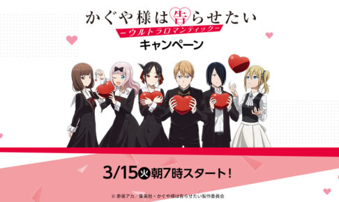 赤坂アカ先生による人気漫画を原作としたTVアニメ「かぐや様は告らせたい -ウルトラロマンティック-」× 全国のローソンにて、2022年3月15日よりコラボキャンペーンが実施される。対象商品を購入の方に、四宮かぐや・白銀御行・藤原千花・石上優・伊井野ミコ・早坂愛ら人気キャラ達のローソン限定ステッカーをプレゼント!