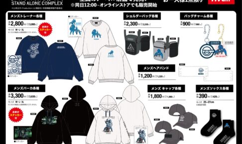 士郎正宗先生による人気漫画を原作としたアニメ「攻殻機動隊 STAND ALONE COMPLEX」× しまむらグループが展開するカジュアルブランド「Avail (アベイル)」全国にて、2024年9月7日よりコラボグッズが発売される。「笑い男」のマークや「タチコマ」などをデザインしたウェア & グッズが登場!