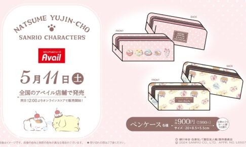 「緑川ゆき」先生による漫画を原作とした人気TVアニメ「夏目友人帳」 × 大人気キャラクターブランド「サンリオ」のコラボアイテムが、しまむらグループの展開する「Avail (アベイル)」全国にて、2024年5月11日より発売される。ニャンコ先生とハローキティ達がお菓子に囲まれたデザインの「ペンケース」が登場!