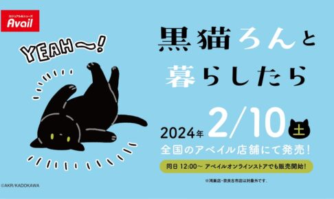 黒猫ろんの飼い主AKRさんによるエッセイ漫画「黒猫ろんと暮らしたら」× アベイル全国にて、2024年2月10日よりコラボグッズが発売される。黒猫のろんがデザインされた「ワンピース」「ルームウェア」などアパレルアイテムの他、「ポーチ」「チャーム」「ミニタオル」「アクリルキーホルダー」などグッズも多数ラインナップ!