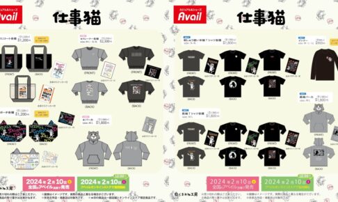 イラストレーターの「くまみね」さんによる人気キャラクター「仕事猫」× しまむらグループが展開するカジュアルブランド「Avail (アベイル)」全国にて、2024年2月10日よりコラボグッズが発売される。フードをかぶると仕事猫になりきれる「パーカ」他、楽しいアパレルアイテムやコラボグッズが多數ラインナップ!