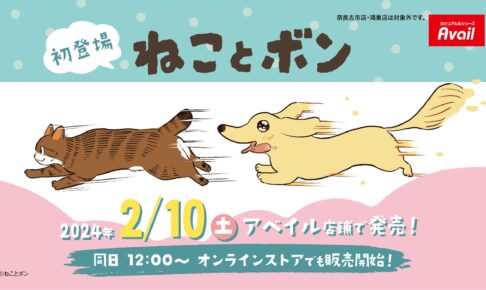 ダックスフンドの「ボンちゃん」と、キジトラ猫の「ねこちゃん」の癒やされる日常を描いた「ちとせ」氏による人気作品「ねことボン」× しまむらグループが展開するカジュアルブランド「Avail (アベイル)」全国にて、2024年2月10日よりコラボグッズが発売!見ているだけで癒やされそうなコラボアイテムが多数登場!