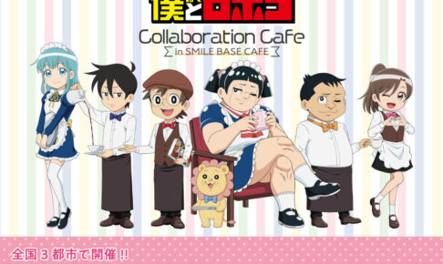 宮崎周平先生による人気漫画を原作としたアニメ「僕とロボコ」× SMILE BASE CAFE (スマイルベースカフェ) 3店舗(池袋・大阪・名古屋)にて、2023年1月28日を皮切りにコラボカフェが開催される。ロボコ・ボンド・モツオ・ガチゴリラらがカフェ店員衣装に身を包んだ描き下ろしイラストが先行解禁された。