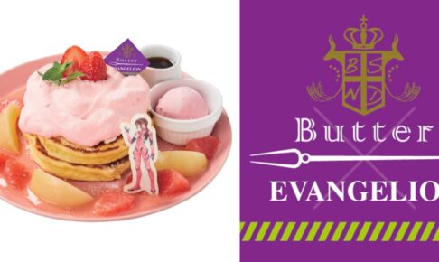 庵野秀明監督による大人気アニメ「エヴァンゲリオン」シリーズ × パンケーキ専門店 Butter4店舗 (横浜/東京/大阪/滋賀) にて、2022年4月12日よりコラボカフェ第1弾を開催。「エヴァ」の世界観や人気キャラをモチーフとしたメニューを提供する他、特典プレゼントやテイクアウトスイーツの販売を実施する。