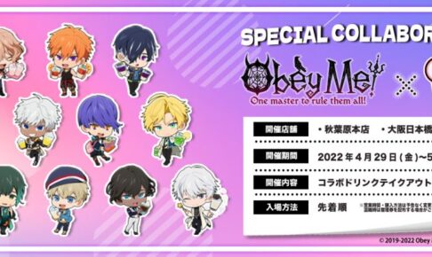 エヌ・ティ・ティ・ソルマーレから配信されている大人気女性向けゲーム「Shall we date?」シリーズの最新作『Obey Me! (おべいみー)』× きゃらドリ!! 東京 / 大阪にて、2022年5月29日までコラボカフェが開催される。5月14日からはアスモデウスのバースデー記念ドリンク&ノベルティー登場!