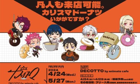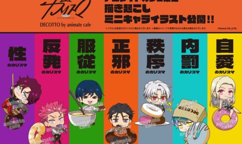 「ヒプノシスマイク (ヒプマイ)」開発・運営チームが手掛ける超人的シェアハウスストーリー「カリスマ」× DECOTTO by アニメイトカフェにて2024年4月24日〜5月27日までコラボカフェが開催される。「カリスマ」コラボカフェの詳細に先駆け、イベント限定描き起こしミニキャライラストが公開!