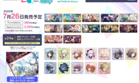 セガ × Colorful Paletteが手掛ける人気ゲーム「プロジェクトセカイ カラフルステージ! feat. 初音ミク (プロセカ)」から、イベントイラストを使用した新作グッズが2025年7月に発売される。メモリアルステッカー「メモステコレクション Vol.6」や「ミニ色紙コレクション 第48弾」が登場!
