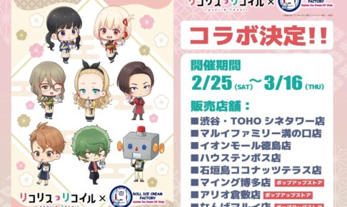 A-1 Pictures制作の大人気アニメ「リコリス・リコイル (リコリコ)」× 全国のロールアイスクリームファクトリーにて、2023年2月25日〜3月16日までコラボフェアが開催される。錦木千束・井ノ上たきな・クルミ・ミズキらをイメージしたコラボアイス、描き起こしミニキャライラストのノベルティ&グッズが登場!