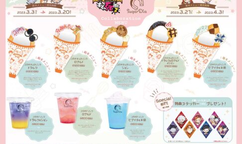 盆ノ木至先生による人気漫画を原作としたアニメ「吸血鬼すぐ死ぬ (吸死) 2」× SugarDia (シュガーディア)にて、2023年3月3日〜3月20日までコラボが開催される。「ロナルド」「ドラルク」「ジョン」「ヒナイチ」「半田」らをイメージしたコラボチュロリングや、コラボグッズがラインナップ!