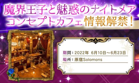 ボルテージが贈る恋愛ドラマ・ボル恋シリーズの「魔界王子と魅惑のナイトメア」× 原宿Solomonsにて2022年6月23日までコラボカフェが開催される。作品の世界観やキャラクターをイメージしたコラボメニューがお楽しみいただける他、美麗なビジュアルを使用したコラボカフェ限定グッズが登場!