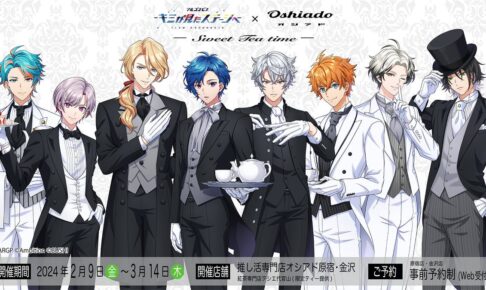 ボーイズバンドプロジェクトの人気ゲーム「アルゴナビス -キミが見たステージへ- (キミステ)」× 推し活専門店「オシアド」3店舗(原宿・金沢・代官山)にて、2024年2月9日〜3月14日までコラボカフェが開催される。お茶やお菓子を振る舞う描き下ろしイラストと、総計27名の描き起こしミニキャライラストが公開!