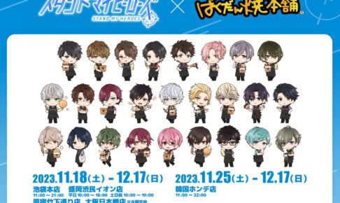colyが手掛けるドラマチック恋愛パズルゲーム「スタンドマイヒーローズ (スタマイ)」× ばくだん焼本舗にて、2023年11月18日〜12月17日までコラボが開催される。コラボ限定描き起こしミニキャライラストを使用した特典付きコラボばくだん焼が発売される他、オリジナルグッズも販売!