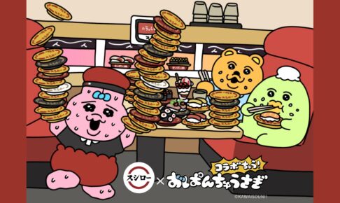 イラストレーター・可哀想に! さんによる、SNSで話題の大人気キャラクター「おぱんちゅうさぎ」× スシロー全国によるコラボキャンペーンが、2023年11月29日〜12月25日までの期間限定で開催される。『おぱんちゅルーレット』が楽しめるコラボピック付き限定メニューや、抽選で当たるオリジナルコラボグッズが登場!