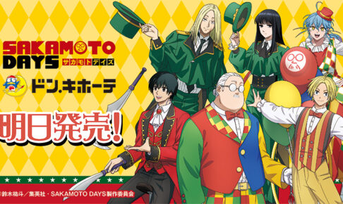 鈴木祐斗先生原作の大人気TVアニメ「SAKAMOTO DAYS (サカモトデイズ)」× ドン・キホーテ全国にて、2025年9月20日よりオリジナル描き下ろしグッズが発売される。坂本さん、シン、南雲ほか人気キャラクター達がサーカス団に扮した描き下ろしイラストの新作グッズが多数ラインナップ!