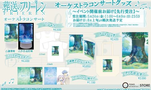 週刊少年サンデーにて連載中「山田鐘人」「アベツカサ」両先生に原作の大人気TVアニメ「葬送 (そうそう) のフリーレン」の劇中BGMを演奏するオーケストラコンサートが、2024年8月21日に神奈川・パシフィコ横浜国立大ホールにて開催。本イベントにて販売されるオリジナルグッズの情報が解禁された。