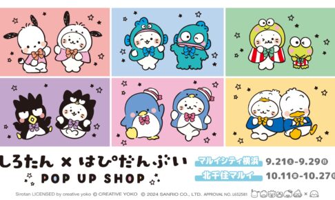 まっしろでふわふわなタテゴトアザラシの「しろたん」× サンリオが贈る個性豊かな6人の男のコたち「はぴだんぶい」のポップアップストアがマルイシティ横浜 (神奈川)・北千住マルイ (東京) にて、2024年9月21日より順次開催される。シルクハットを被っておめかしした可愛い描き下ろしグッズが多数ラインナップ!