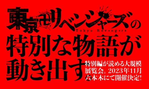 和久井健先生による大人気漫画「東京卍リベンジャーズ」の大規模展覧会「TOKYO REVENGERS-EX 2023」が、六本木ヒルズ・東京シティビューにて2023年11月頃に開催決定。「東リベ」大規模展覧会では、第277話「At last」で描かれなかった最後の戦いが特別描き下ろしとして登場する。