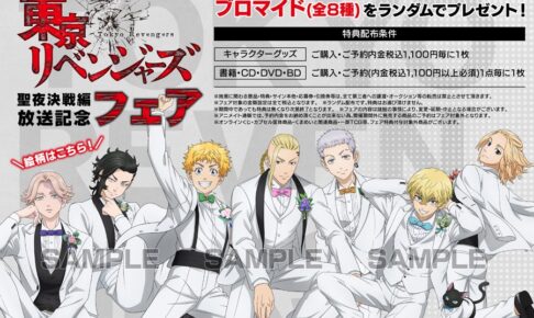 「和久井健」先生による人気漫画を原作とするTVアニメ「東京リベンジャーズ」× ムービックの描き下ろしイラスト“タキシードVer.”イラストを使用した特典が貰える『聖夜決戦編放送記念フェア』が、アニメイトにて2022年12月10日〜2023年1月22日まで開催!また、“タキシード Ver.”グッズも先行販売!