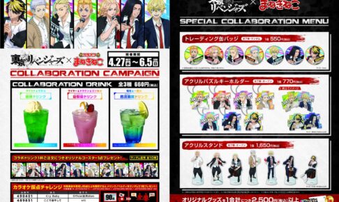 和久井健先生の大人気漫画を原作としたTVアニメ「東京リベンジャーズ」× カラオケまねきねこにて、2022年4月27日〜6月5日までの期間開催される「東リべコラボ」の詳細解禁!タケミチ&千冬・マイキー&ドラケン&三ツ谷・場地&一虎たち人気キャラクターをイメージしたメニューや描き下ろしイラストグッズが登場!