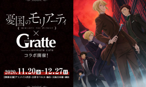 「ジャンプSQ」にて連載中の竹内良輔先生が構成・三好輝先生が作画の人気漫画を原作とするTVアニメ「憂国のモリアーティ」× アニメイトカフェグラッテ全国5店舗(渋谷・吉祥寺・大阪日本橋・仙台・岡山)のコラボが、2020年11月20日〜2020年12月27日までの期間限定で開催!