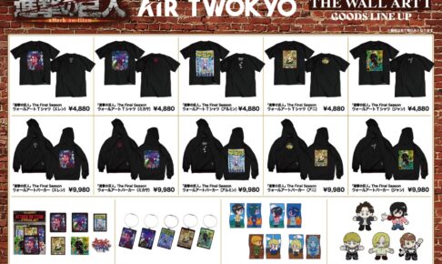 諫山創先生による人気漫画のTVアニメ「進撃の巨人」× AIR TWOKYO (エアトゥーキョー)のポップアップストアが、『あみあみ秋葉原ラジオ会館店』(東京)にて2024年12月18日~12月24日まで開催!「進撃の巨人」の作中シーンやキャラクターたちをオシャレかつスタイリッシュにデザインしたグッズが登場!