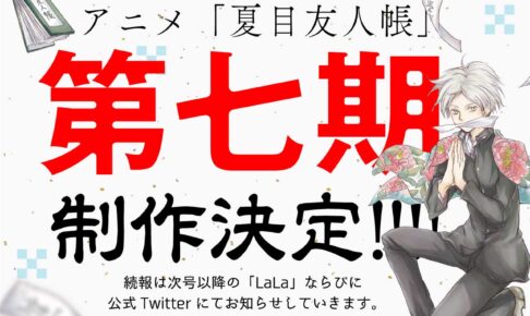 2008年にアニメ第1作が制作された、緑川ゆき先生原作の人気TVアニメ「夏目友人帳」が2023年で15周年を迎えることを記念したプロジェクトがスタートし、夏目役・神谷浩史さんとニャンコ先生役・井上和彦さんによる記念動画の中でファン待望の第7期制作が発表。また、15周年PVや記念ビジュアルが公開された。