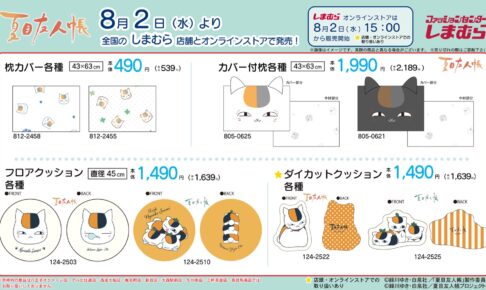 優しさと切なさに溢れた「緑川ゆき」先生による漫画を原作とする、TVアニメ「夏目友人帳」× ファッションセンター「しまむら」全国にて、2023年8月2日よりコラボグッズが発売される。「夏目友人帳 × しまむら」では、ニャンコ先生をデザインした、新作グッズや日用雑貨・アパレルアイテムなどが多数登場する。