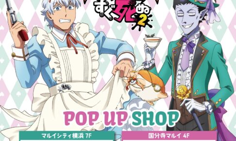 盆ノ木至先生による人気漫画を原作としたアニメ「吸血鬼すぐ死ぬ 2」× マルイ2店舗(横浜・国分寺)にて、横浜会場の2023年2月10日よりポップアップストアが開催される。「吸血鬼すぐ死ぬ 2」ポップアップストアでは、エプロン姿のロナルドやドラルクの描き下ろしイラストを使用した新作グッズが多数販売される。