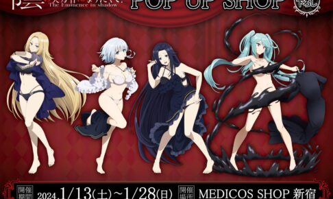 逢沢大介先生原作のアニメ「陰の実力者になりたくて!」× メディコスショップ新宿にて、2024年1月13日〜1月28日までポップアップストアが開催される。アニメ「陰の実力者になりたくて!」ポップアップストアでは、”着替え”をテーマに、お着替え中の4名の描き下ろしイラストを使用した新作グッズが多数ラインナップ!
