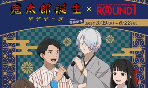 「水木しげる」先生の生誕100周年を記念したアニメーション映画「鬼太郎誕生 ゲゲゲの謎 (ゲ謎)」× ラウンドワン全国にて、2025年3月19日〜6月22日までコラボキャンペーンが開催される。鬼太郎の父 (ゲゲ郎)、水木、沙代、時弥、鬼太郎、ねこ娘、目玉のおやじがカラオケやボウリングを楽しむ描き下ろし先行公開!