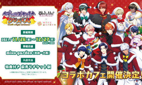 大人気イケメン悪魔7人兄弟調教ゲーム「Obey Me! (おべいみー!)」× mixxgarden(池袋・大阪)にて2021年11月26日〜12月27日までの期間限定で「Obey Me! (おべいみー!)コラボカフェ」第2弾開催!クリスマスシーズンにぴったりなメニューやグッズが登場!