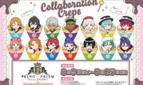 誕生から8周年を迎え、再始動が決定したプリティーリズムの公式スピンオフ「KING OF PRISM (キンプリ)」の劇場版映画「KING OF PRISM -Dramatic PRISM.1-」× Amo Crepe池袋店/出張版なんばマルイ店にて、2024年8月9日〜8月25日までコラボが開催される。