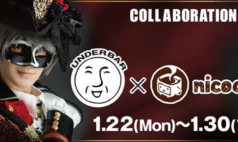 「UNDER THE LIVE2018-ダーバーテイメント-」開催を記念して、「__(アンダーバー)」 × ニコカフェ池袋にて1/30までコラボカフェ開催中!!「__(アンダーバー)」がニコニコ本社をジャック!開催期間は2018年1月22日〜1月30日までとなっている。